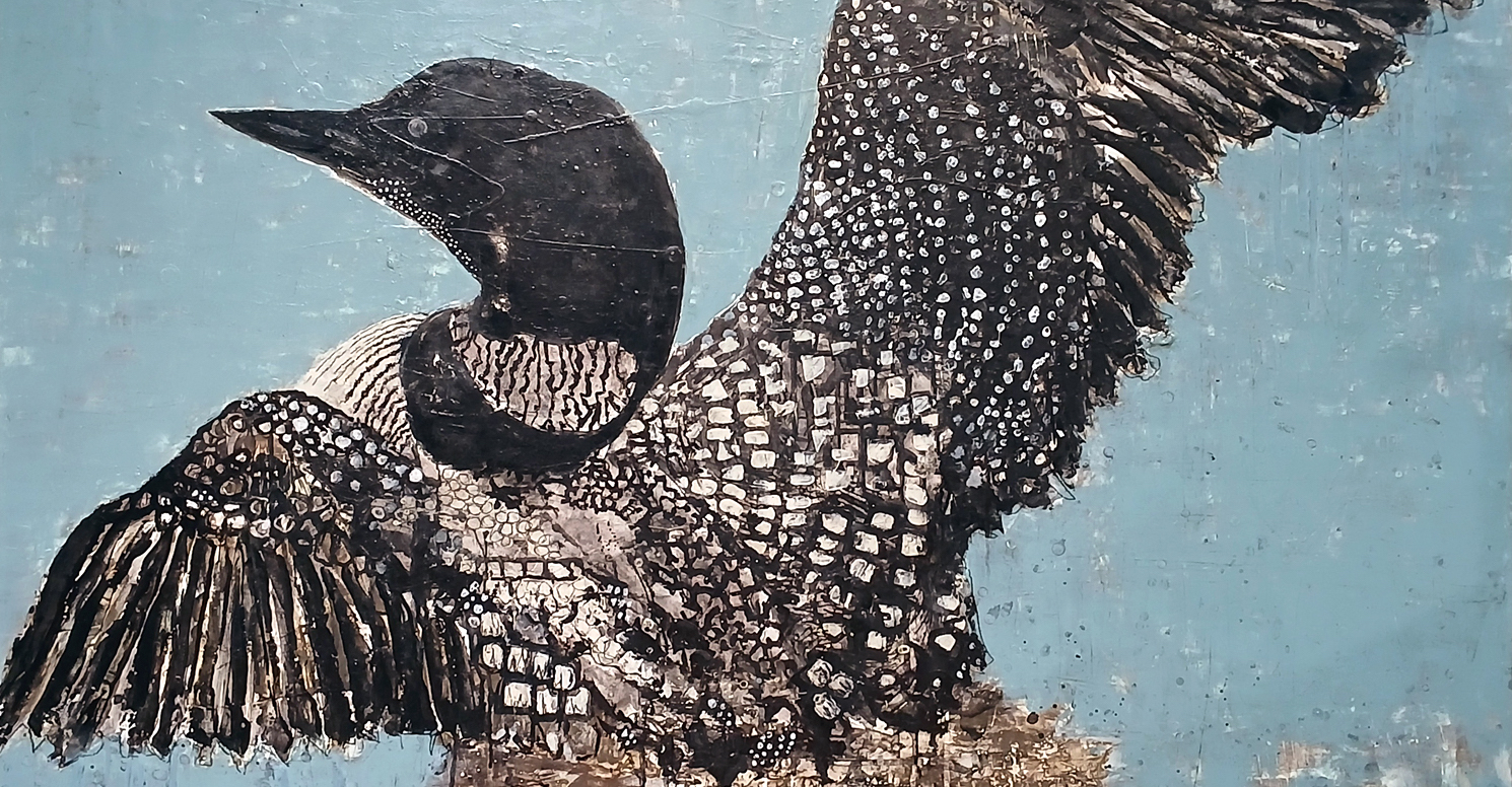 John’s design background is evident in his use of geometric patterns, bold colour and stylized imagery. Each piece has the narrative inspiration written on the back or underside of the work.
